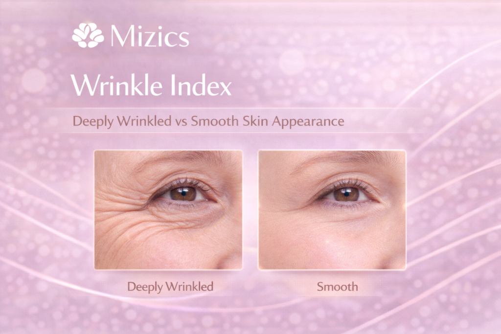 You can instantly view your own Wrinkle Index using the Mizics Online Skin Analyser. Your results include a clear explanation of what your score represents and appearance-focused skincare suggestions.